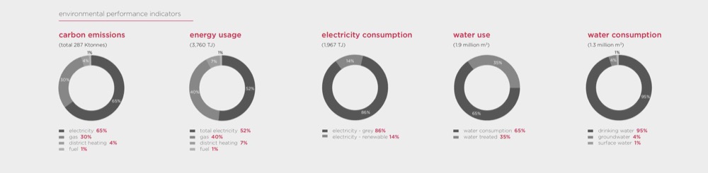Sinds 2017 meten we al ons energie- en waterverbruik. In onderstaande afbeelding is af te lezen wat de meting van alle Aalberts bedrijven in 2019 is. De C02-uitstoot van de hele groep rapporteert Aalberts met de vereisten van het GHG-protocol. Uit de diagrammen is onder andere te zien dat ons energieverbruik met 8,2% daalde, onze CO2-uitstoot met 9,7% afnam een het waterverbruik eveneens daalde met 6,2% ten opzichte van vorig jaar.